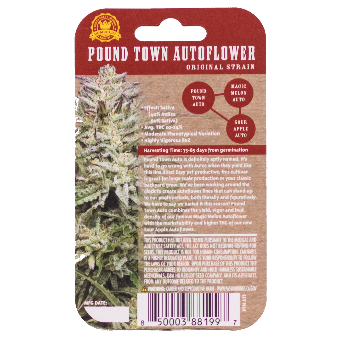 Pound Town Auto is definitely aptly named, it’s hard to go wrong with autos when they yield as this line does! Easy yet productive, this cultivar is great for large-scale production, or your classic backyard grow. We’ve been working around the clock to create Autoflower lines that can stand up to our Photoperiods, both literally and figuratively. We have to say we nailed it this season! Pound Town combines the yield, vigor, and bud density of our famous Magic Melon Autoflower with the marketability and higher potency of our new Sour Apple Auto.