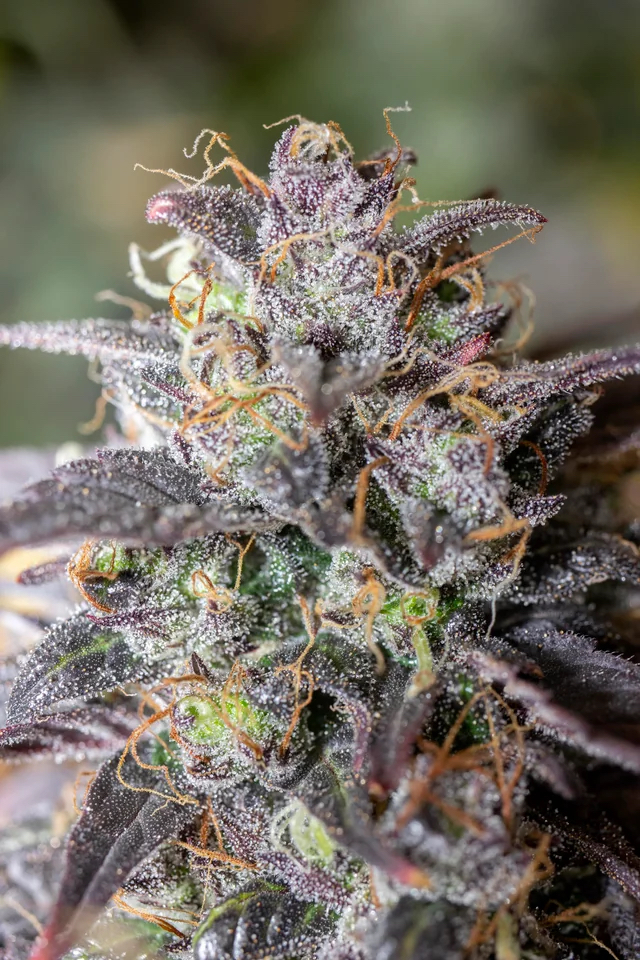 The F2 generation truly blossomed. Recessive purple phenotypes emerged, paving the way for future lines, while green phenos impressed with even greater frostiness, colorful fades, and an intoxicating tropical bouquet. From raspberry and cantaloupe to cherry, mango, papaya, and pear, the terpene profile was a symphony of sweet, juicy flavors. This generation yielded the final selection for autoflowering development, based on terpene complexity, slightly tighter bud structure, overall size, and fast finishing time.