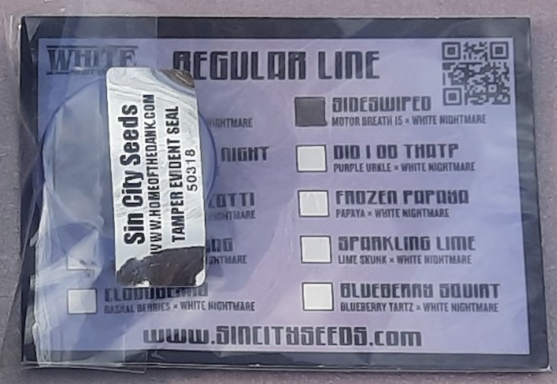 You are bidding on one pack of Sin City Seeds Sideswiped 15 Regular Photoperiod Seeds!