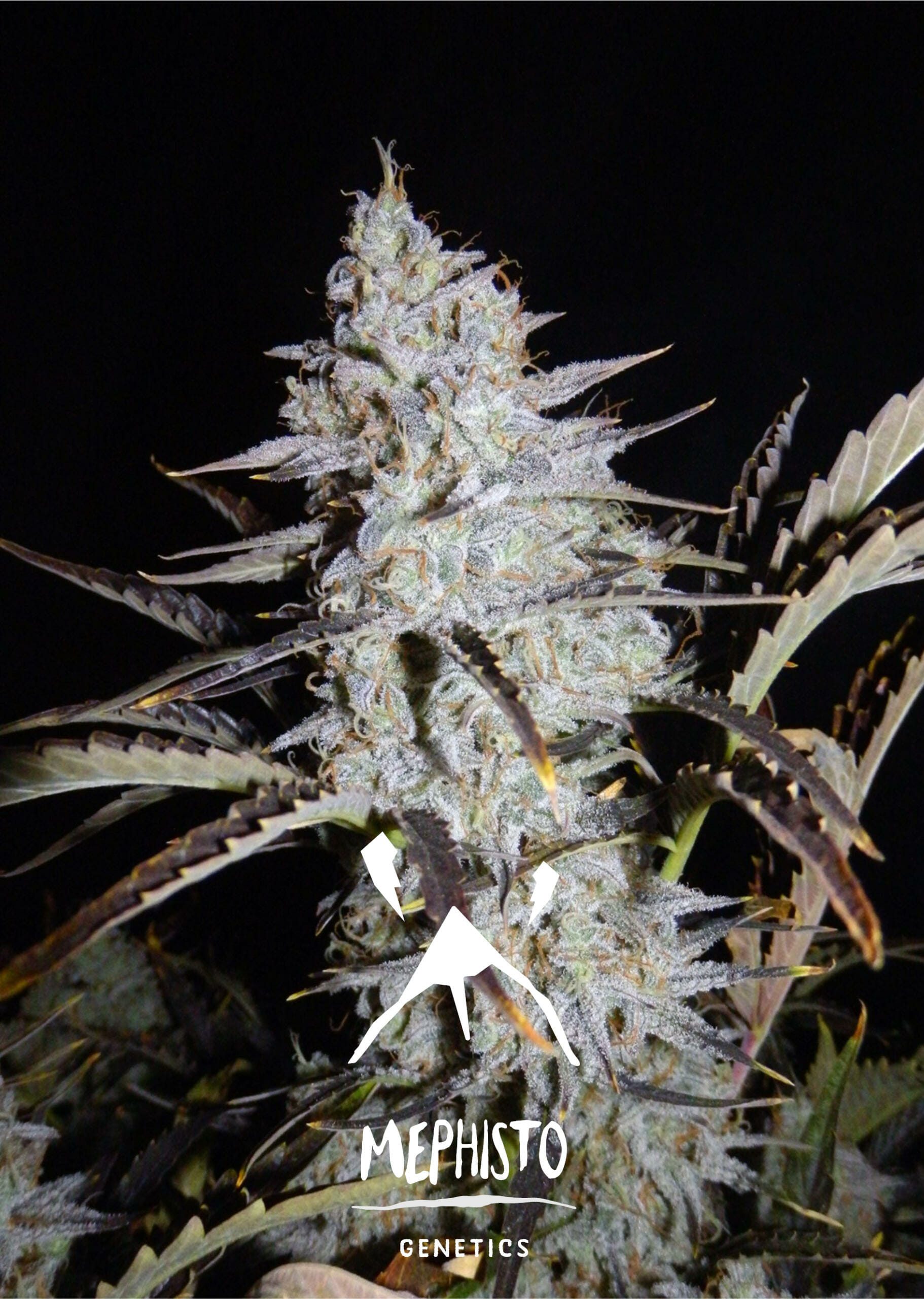 Sour Stomper is the first Mephisto variety whereby someone else had a hand in the project, and we’ve been delighted with the results at every stage since. So first and foremost we have to give credit to GBD @Autoflower Network for having the foresight, skill and taste in quality genetics to get this project underway. He made the F1 cross using a Sour Crack female and Grape Stomper OG male, so here’s a word from the man himself: “Sour Stomper began with a trip to Denver, Colorado to celebrate the legalization of recreational cannabis use on January 1, 2014. After spending two weeks sampling almost one hundred strains there was a clear standout: Grape Stomper. The grape flavours she emits are other-worldly, almost too good to be true! I had been disappointed by grape strains in the past, but after two tokes of her greasy, grapey, sweet, mouth coating smoke, accompanied by an instantaneous rush of full-body relief, I knew she was something special. This began the quest to find Grape Stomper genetics and introduce them into the already unbelievably good autoflower genetics created by Mitch and Tim. The search was damn near impossible, taking correspondence relay races, waiting lists, and some asking extra nicely to finally acquire the beans. If anyone goes on a successful quest for them today my hat is definitely off to you! Once in hand they were immediately germinated, vegged, cloned and flowered. All of the females were absolute crystal queens, but they all left something to be desired in the way of grapey goodness, however, one of the males was a different story. The scent from his tacky stems transported me right back to the flavours of the original Grape Stomper, with a little something extra, slightly offensive in the mix. He was selected to pollinate a super sweet Sour Crack that had strong grape undertones and was caked in resin. From there the offspring were handed off to Mitch and Tim to work their magic on, and to translate the best qualities of Grape Stomper into autoflower format. After seeing the Sour Stomper F3 grown out first hand in Spain last year I can safely say the quest was a complete success.” On receiving the F1 seeds from GBD, we set about our usual process for F1 runs, starting 30-40 plants, narrowing down to a selection of 9 females. During the F1s we witnessed some of the most complete, thickest trichome coverage we’ve had the pleasure of seeing, out of anything, automatic or photoperiod, ever. We selected two pollination candidates, a thick Sour Crack dominant lady; big, thick, fingered leaves, fantastic resin, with an added injection of a sweet grape scent. The second, a Grape Stomper OG dominant lady with nice branching and more elongated colas. She had thinner leaflets, a positively intoxicating smell and again covered in whiteness. The F1 grow was in winter 2014 and the plants quickly turned a deep exotic velvet purple to black with the cooler temperatures. Generally, we like to steer away from the plants at F1 that favour the auto parentage, but with this variety and the other Artisanals so far, the already high-quality building blocks used to donate the auto trait is making this decision trickier, but we opted to go with the Grape Stomper leaning parent. Actually, in hindsight, I don’t think we could have gone far wrong with any of the selections from this cross at F1. The foliage of these F1 females were so triched out, it almost felt like sacrilege to trim them. At F2, we witnessed a more compact version of the F1s, but a larger version of the Sour Crack, one of our strains we’ve grown and played with relentlessly over the years.