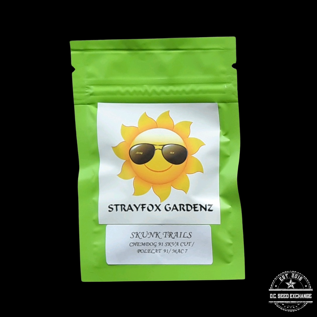 You are bidding on one rare original Strayfox Skunk Trails (Chemdog 91 SKVA Cut x Polecat 91/MAC 7) 11 Regular Photoperiod Seeds pack!
