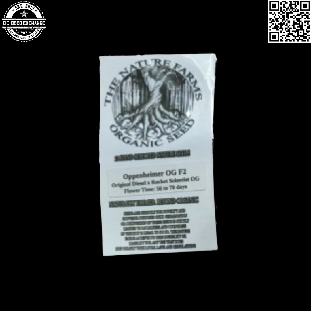 You are bidding on one original The Nature Farms Organic Seed Oppenheimer OG F2 (Original Diesel x Rocket Scientist OG) 12 Regular Photoperiod Seeds pack!