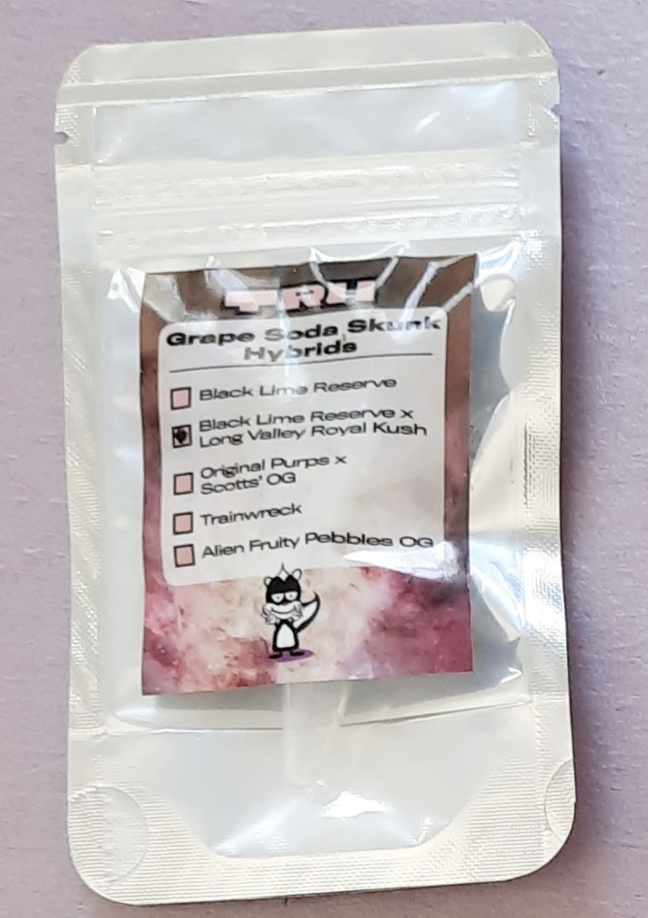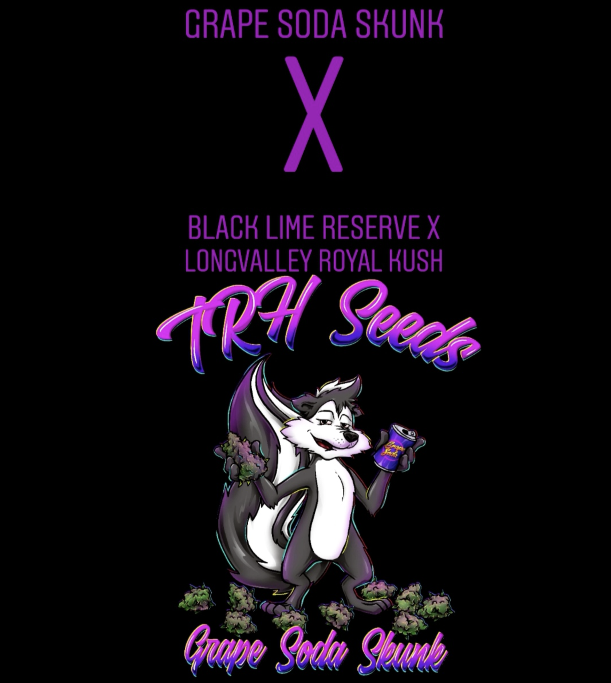 You are bidding on one rare TRH Seeds Grape Soda Skunk x (Black Lime Reserve x Long Valley Royal Kush) F1 10 Regular Photoperiod Seeds pack!