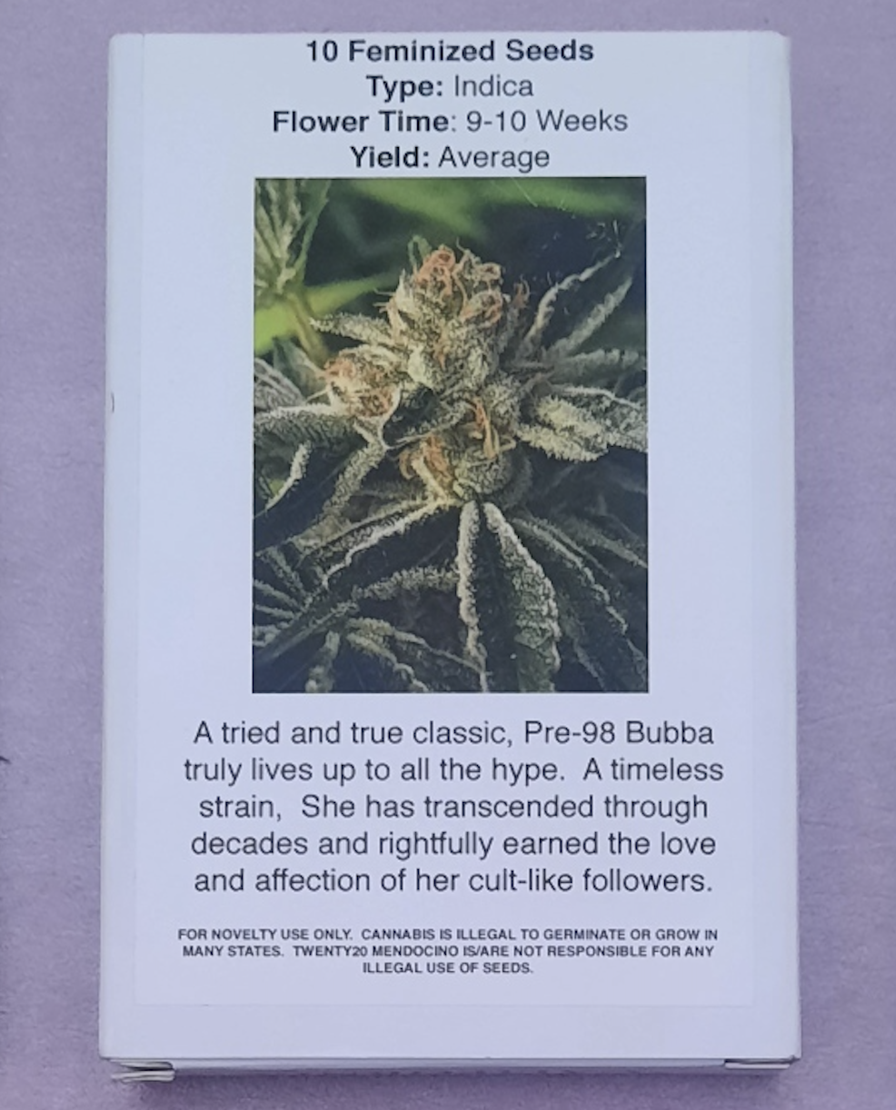 You are bidding on one pack of Twenty20 Genetics’ rare Pre98 Bubba S1 10 Feminized Photoperiod Seeds!