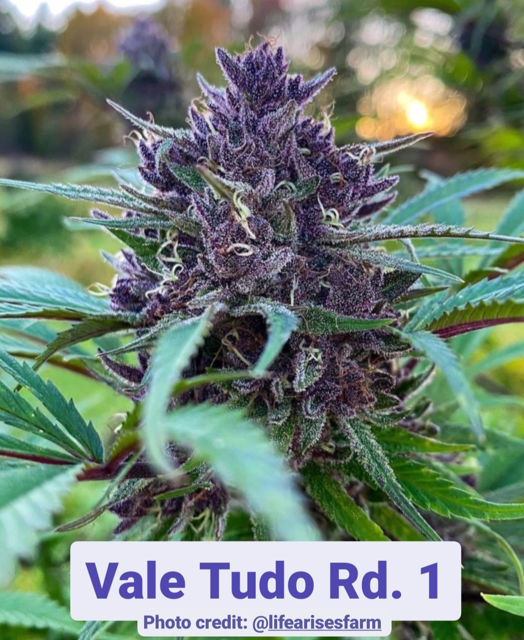 Vale Tudo Round One (F1), pronounced “Vah lay-too dough” not “Vail Too Dough”, is Copa’s vintage beans “Mendo Purps (aka Mendocino Purps) x Exotic’s Kimbo Kush” crossed to Bodhi’s Ancient OG F2 PSM (Purple stem male). There will be four more “rounds” released, each limited in quantities.