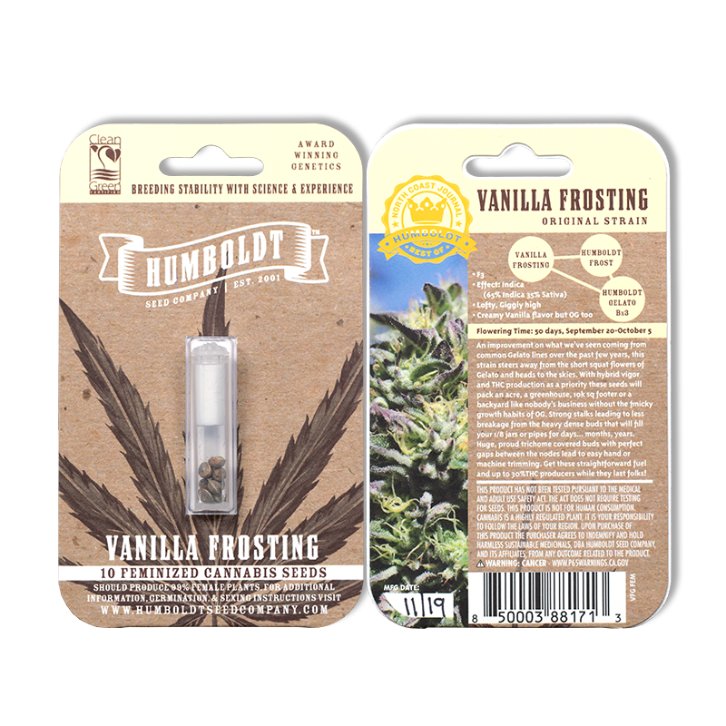 Improving the Gelato lines of the past few years, this strain steers away from squat flowers and heads to the skies. Prioritizing hybrid vigor and potency, these seeds will pack an acre without the finicky growth habits of OG. Strong stalks lead to less breakage from the dense buds that will fill your 1/8 jars or pipes for days. Huge trichome covered buds with perfect node gaps means easy hand or machine trimming. Get these straight forward fuel while they last folks.
