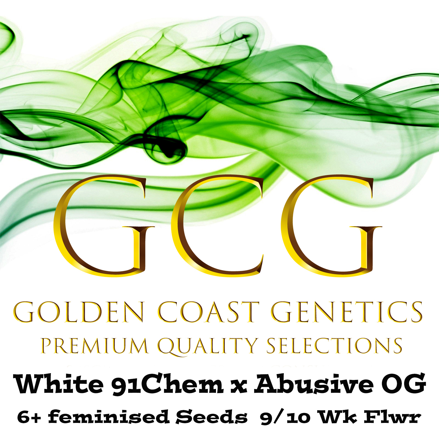 White 91 Chem x Abusive OG F1 by Golden Coast Genetics: Prepare for a full-throttle fuel frenzy! This potent F1 cross unleashes an intoxicating blast of Chemmy Gas, pungent Skunk, and raw Diesel profiles.