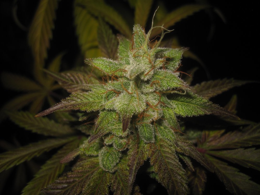 “The Doc” likes to take its time in veg growth you will see sex around 3 weeks. Good intermodal spacing with really nice and even side branching. Very strong plants that can take heavy feeding and lots of stress so it is perfect for beginner growers. Most dense buds in my catalog, average plant can yield an ounce of high quality bud with little to know effort! Sugar coated buds that can turn purple in spots are a dream to look at and photograph.